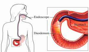An endoscopy is a procedure whereby a camera is placed into the mouth in order to examine the stomach or intestines, just as can be seen from the image below.