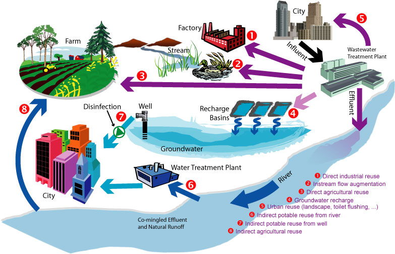 It has become established then, that in such a recycling system wherein water after being cleaned is supplied to homes after having been pumped into the sea, rivers, lakes or underground, such water is pure and purifying.